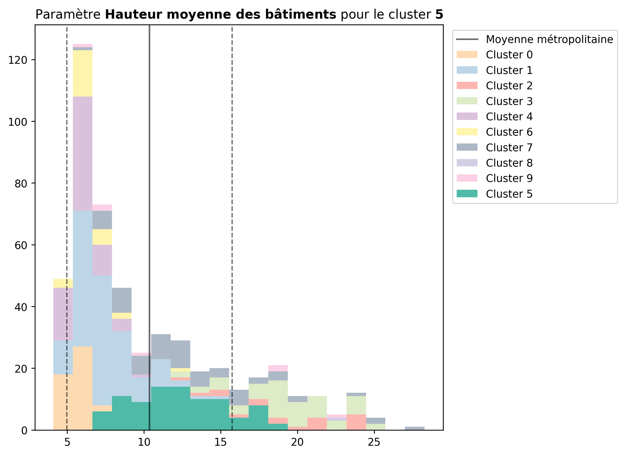 Hauteur moyenne des bâtiments : 12.35 (+/- 3.05) contre 10.37 (+/- 5.38) pour la métropole