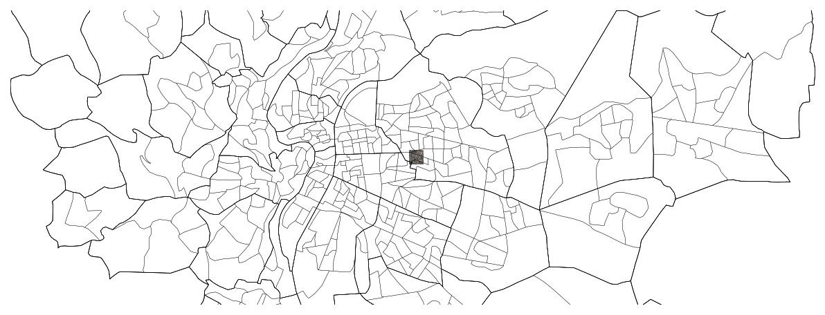 Ce quartier type rassemble 88 IRIS sur une surface de 2 198 hectares, chaque IRIS ayant une surface moyenne de 24.97 hectares (contre 104.98 hectares en moyenne sur toute la métropole).