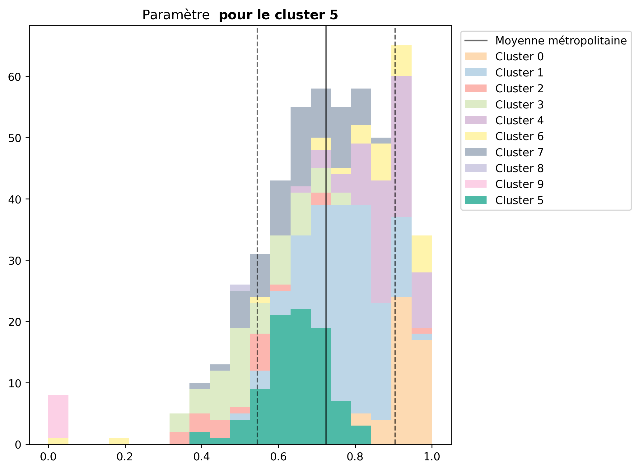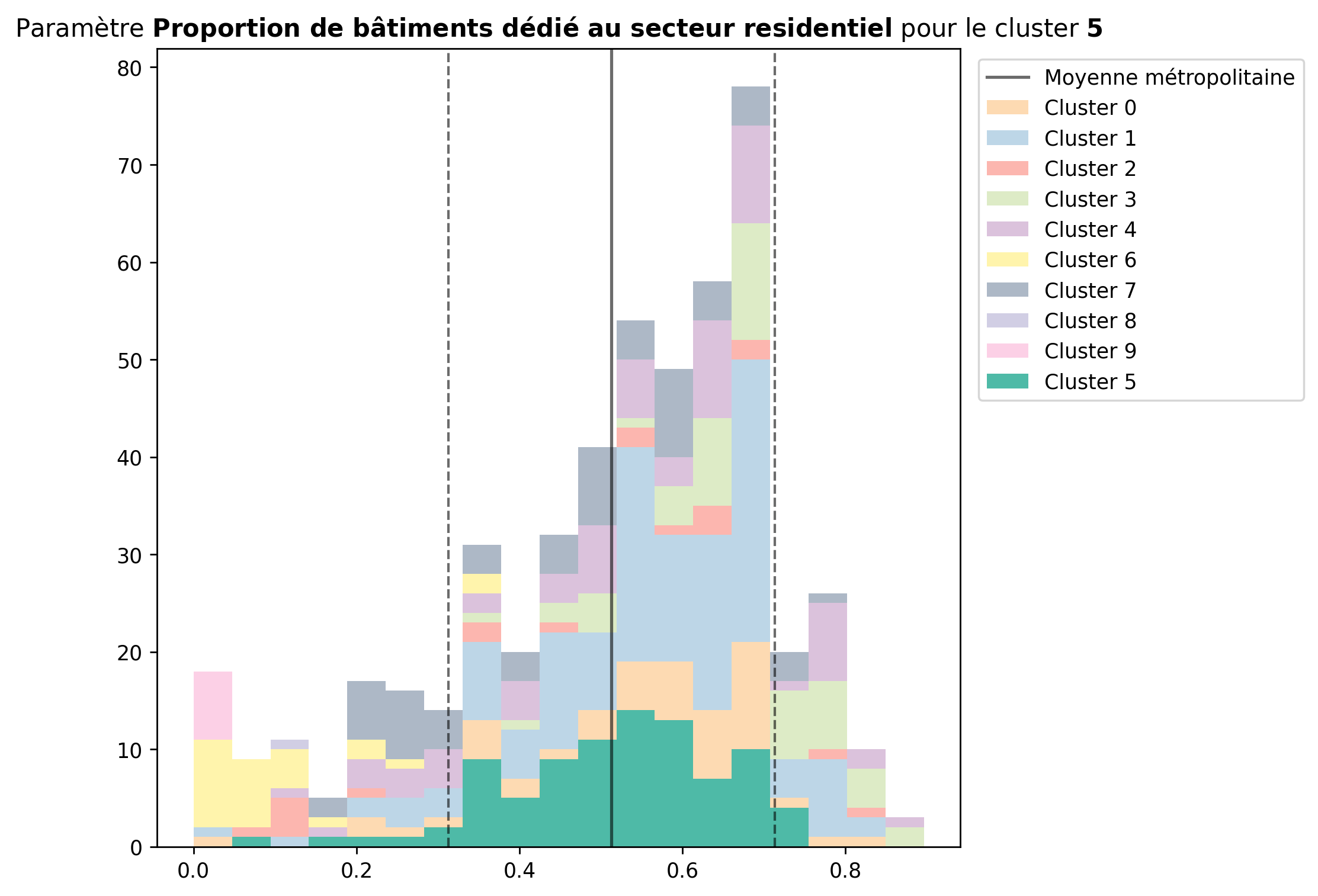 Proportion de bâtiments dédié au secteur residentiel : 0.52 (+/- 0.14) contre 0.51 (+/- 0.20) pour la métropole